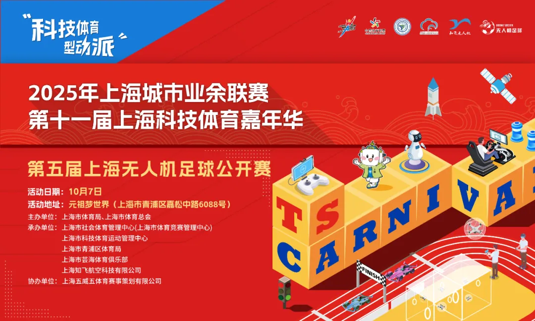 2025年10月7日,由上海市体育局、上海市体育总会主办,上海市社会体育管理中心(上海市体育竞赛管理中心)、上海市科技体育运动管理中心、上海市青浦区体育局、上海市芸海体育俱乐部、上海知飞航空科技有限公司共同承办的 2025年上海城市业余联赛·第十一届上海科技体育嘉年华——第五届上海无人机足球公开赛,在青浦区元祖梦世界燃情启幕并圆满落幕。本届赛事以其尖端的科技内涵与激烈的竞技角逐,成功打造了一场融合创新、智慧与体育精神的城市级科技体育盛会。